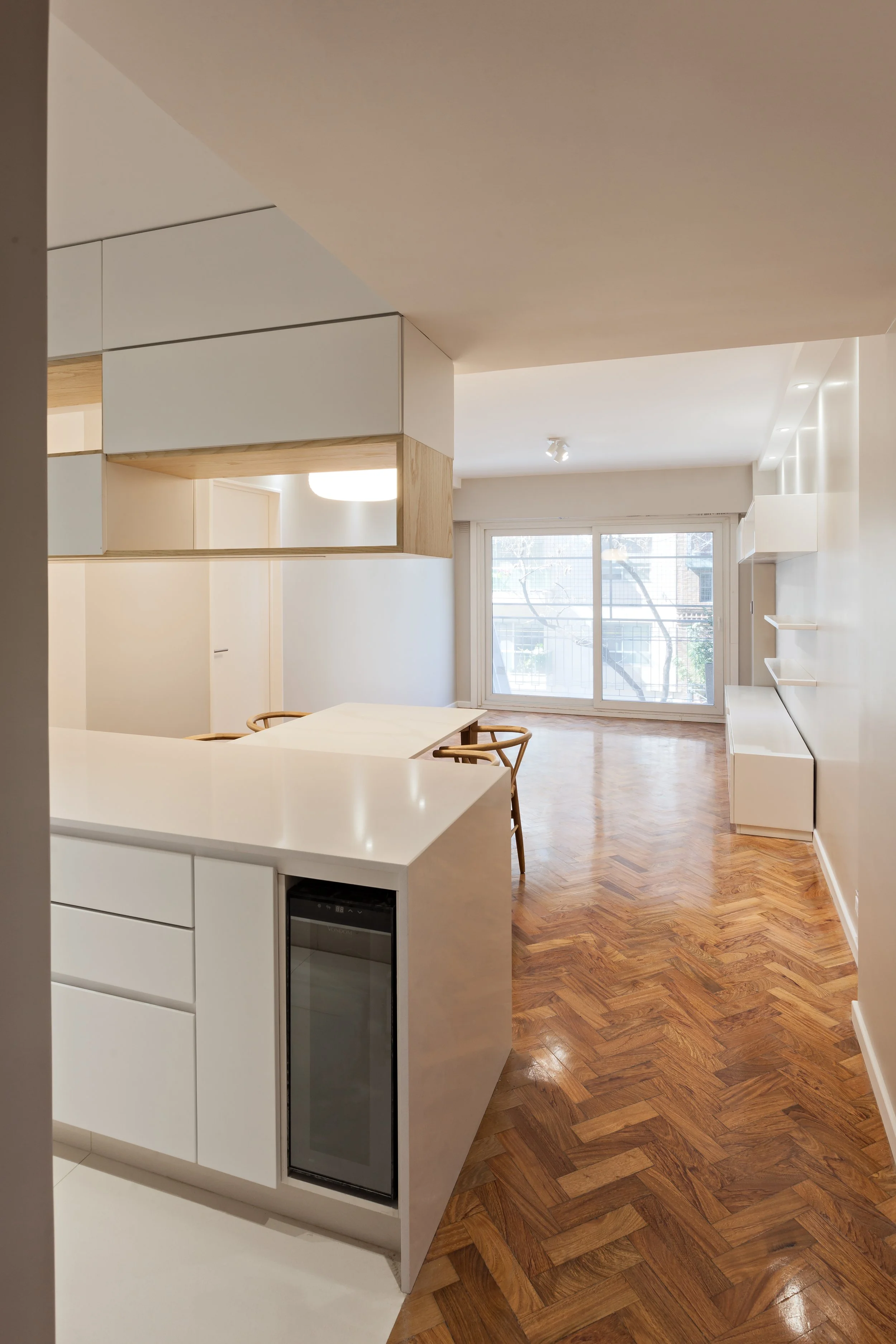 La premisa de diseño fue integrar los ambientes y modernizar su interiorismo, generando mayor espacio de guardado y unificando la cocina con el living comedor, como un espacio central y de mejor circulación.